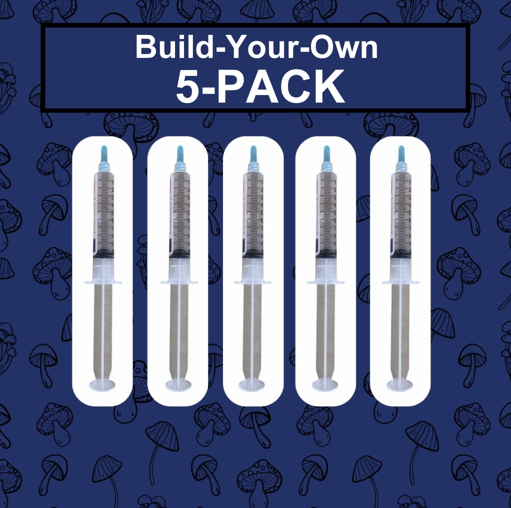 - Five individual 10CC Psilocybe Cubensis spore solution in luer-lok syringe