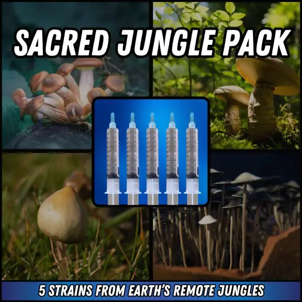 Bring the ancient wisdom of the jungle into your lab with these five strains of P. cubensis, each representing a unique ecological area from around the world! We’ve selected 5 strains from areas where the jungle is the most dense, hard to reach and stacked with biodiversity, so that you can get as close to the wild as possible. Through the Sacred Jungle 5-Pack, you be able to connect with the same genetic-origins that indigenous cultures have utilized for millennia, while learning and mastering your mycology along the way.